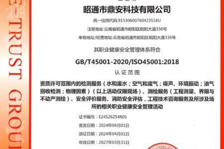 2003年11月10日,昭通市鼎安科技有限公司成立,初始主要從事第三方安全工程技術服務,經多年運營,發展為多專業綜合科技平臺,為社會提供多種專業技術服務工作。 現公司注冊資金為1200萬元,公司法定代表人:毛衛旭。公司主要業務:安全評價、安全標準化評審、安全工程技術服務;環境監測、職業衛生檢測、檢驗;法律訴訟及非訴訟服務;司法鑒定、固定資產投資項目節能服務;工程咨詢;工程測量測繪;安全教育培訓等。是安全生產服務、安全教育培訓機構,也是環境監測和職業衛生服務機構,同時也是綜合的檢測檢驗、綜合科技平臺服務機構。多年來為公、檢、法、司、軍、警、海關、仲裁、安監、工礦商貿企業、社會團體及個人提供多專業技術服務。